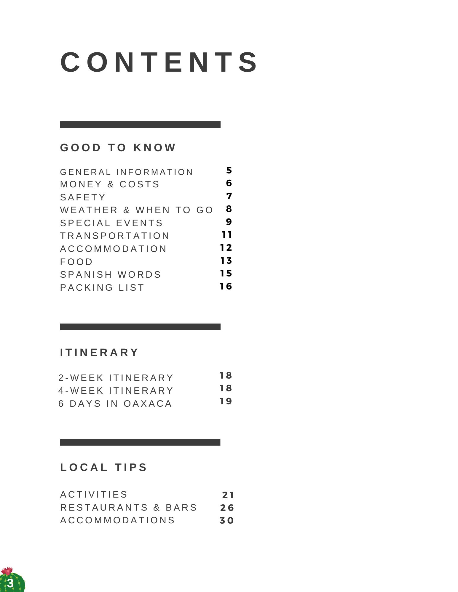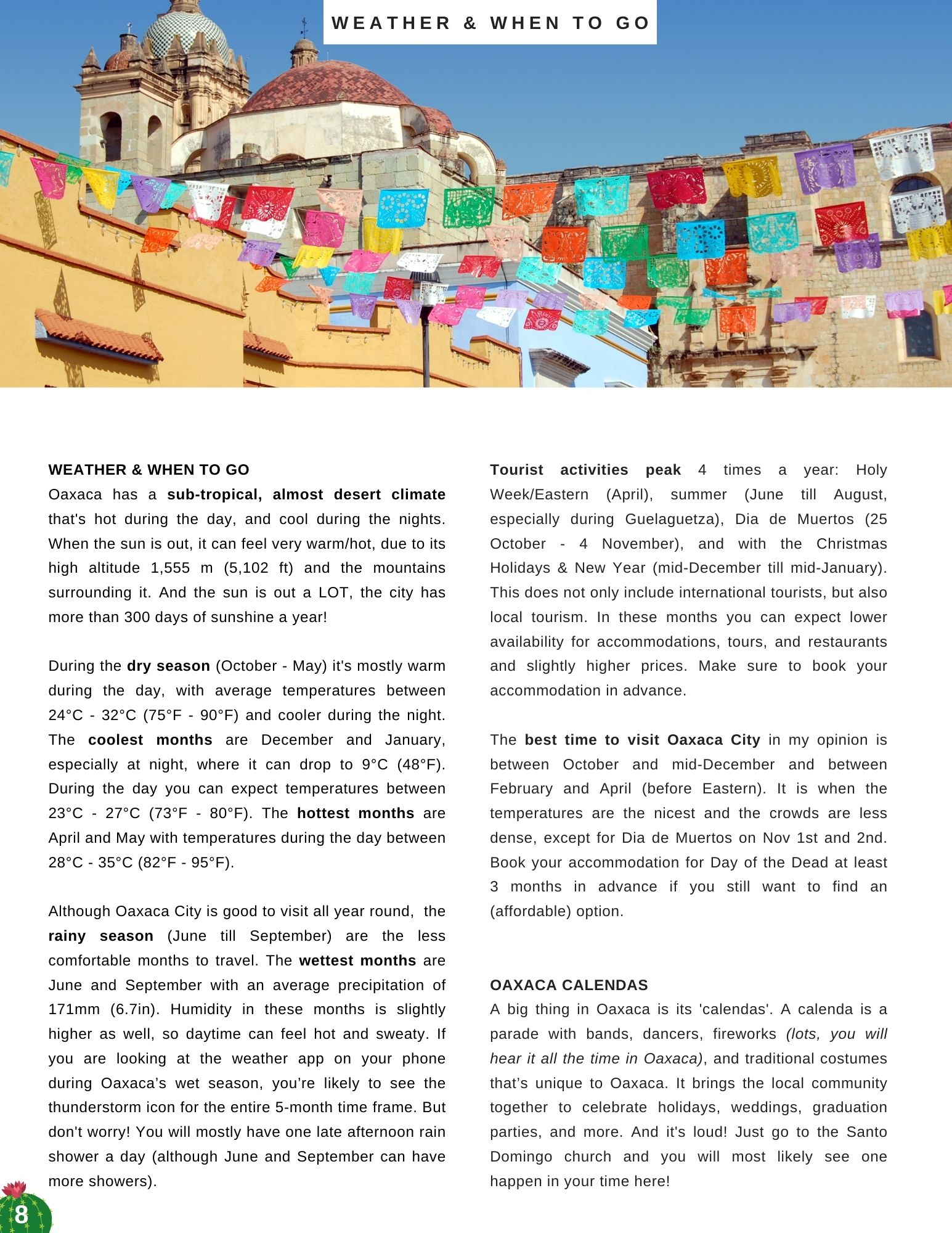 This e-book contains 31 pages of practical information like safety, money, and transportation, and my favorite activities, accommodations, bars, restaurants, and places to visit gathered during my 4 times visiting Oaxaca City as a tourist and almost 3 months living in the city during my 3 years living in Mexico.